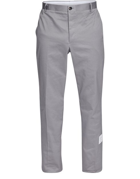 The extravagant chino trousers from Thom Browne propose a classic, lightly undersized cut in a style that is very dear to the New York creator for an elegant and modern result.