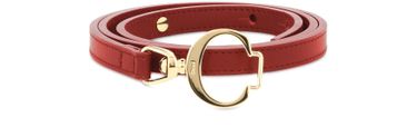 With its finesse and discreet fastening, the calfskin leather Chloé belt elegantly dresses your waist with Chloé's gold C.