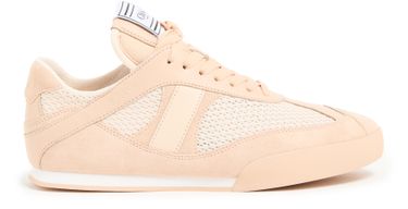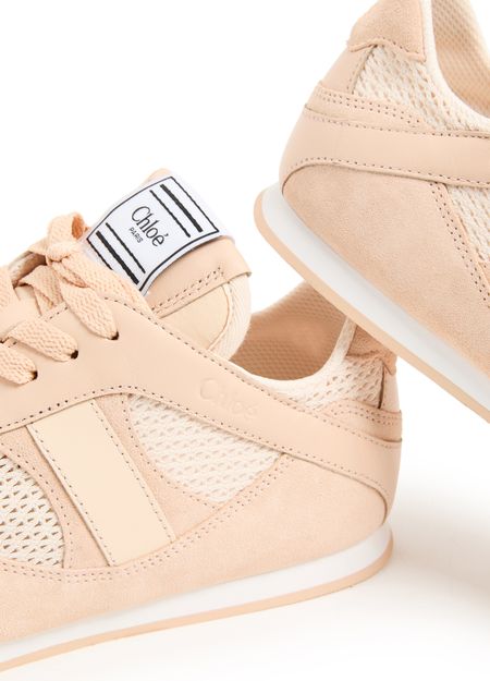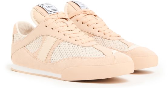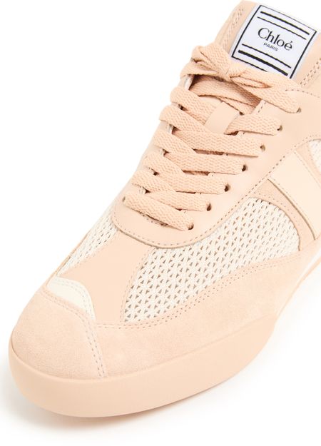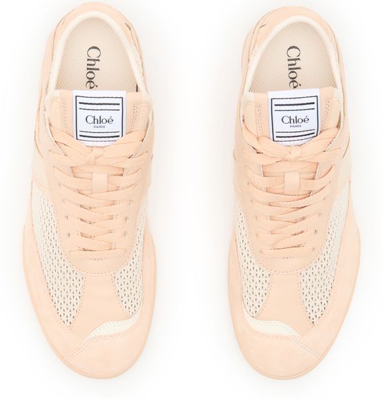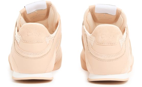 Chloé's Kick sneakers showcase a stylish round toe and a closed design, perfect for any occasion. With the logo on the tongue and an engraved logo at the back, these sneakers stand out. Visible stitching adds a touch of craftsmanship, making them a must-have for modern wardrobes.
