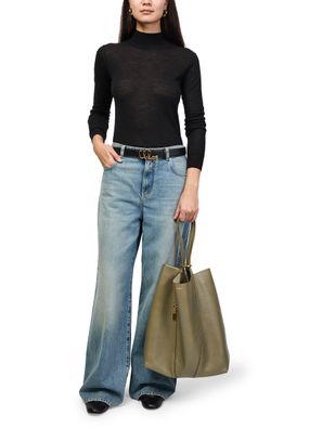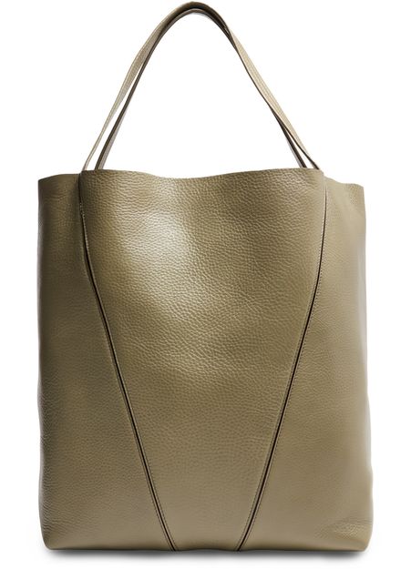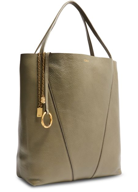 Reveal Chloe's Chloe Spin grained leather tote bag, crafted from supple grained leather with double handles for effortless carrying. Gold-tone charms and a front logo add a refined touch, while visible stitching and a spacious interior compartment ensure both style and practicality for your daily essentials.