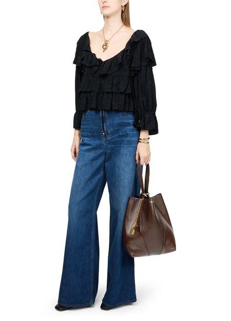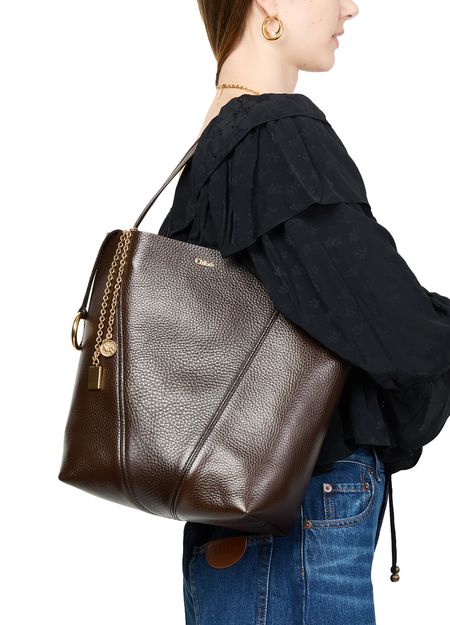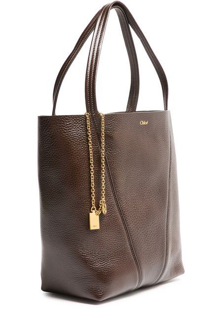 Reveal Chloe's Spin medium tote bag, crafted from supple grained leather with double handles for effortless carrying. Gold-tone charms and a front logo in gold letters add refined detail, while visible stitching and a spacious interior compartment ensure both style and practicality.