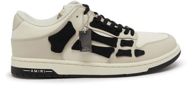 Amiri's Chunky Skel sneakers are a contemporary take on the classic lace-up shoe design. Featuring visible stitching, graphic cut-outs, and a side insert, these sneakers exude modern style. The thick outer sole provides comfort and durability, while the logo on the tongue and side add signature flair. Patch detail adds a unique touch to these sleek sneakers.