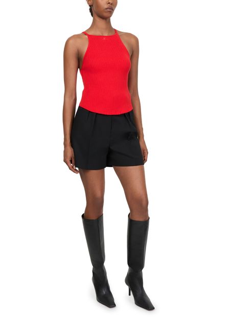 Unveil Courreges's Circle rib knit top, a harmonious blend of style and comfort. This tank, featuring a round neck and slim fit, showcases a striking striped print. The ribbed material enhances its texture, making it a chic choice for any occasion, whether casual or formal.