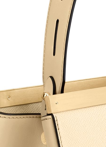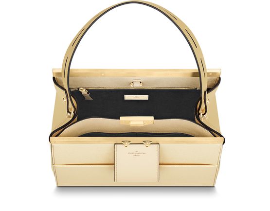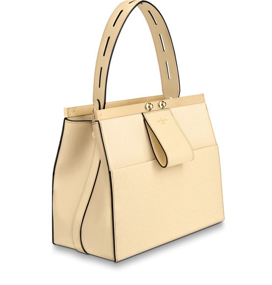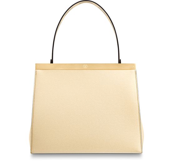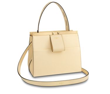 Nicolas Ghesquière referenced both the Déesse and the Speedy Doctor styles when creating the new City Frame handbag. An extension of the metallic frame designs, this structural tote has a unique front loop that can be used to hold gloves and scarves. Crafted from a mix of grained and smooth leather, it features a removable leather strap and handle.
