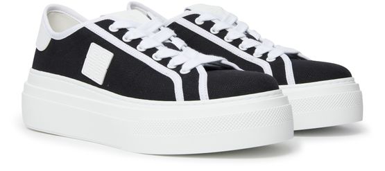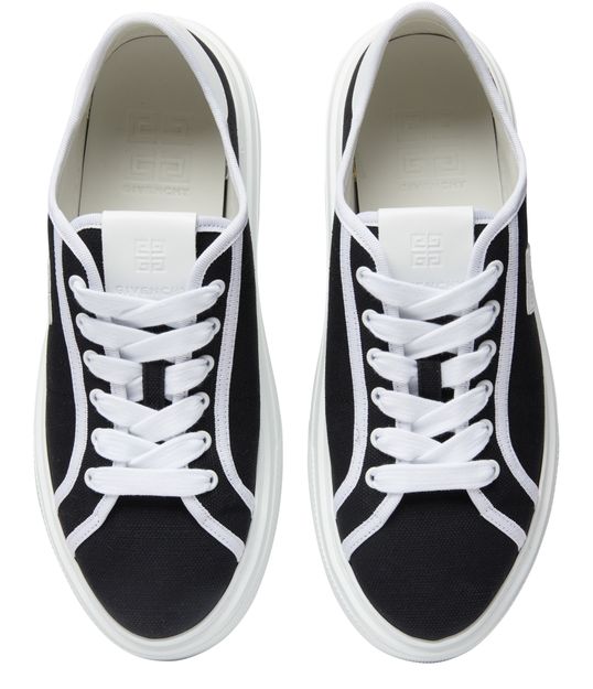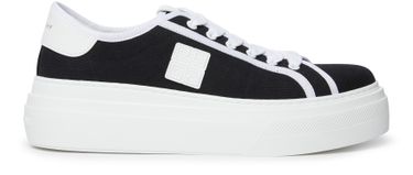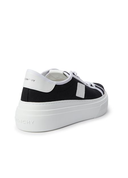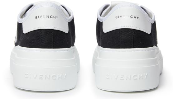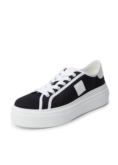 Givenchy'sCity platform sneakers in canvas feature a round toe design with a logo on the tongue for a touch of branding. These closed sneakers also have an appliquéd logo on the side, with additional logos at the back and embossed on the thick outer sole. A patch detail adds a subtle finishing touch.