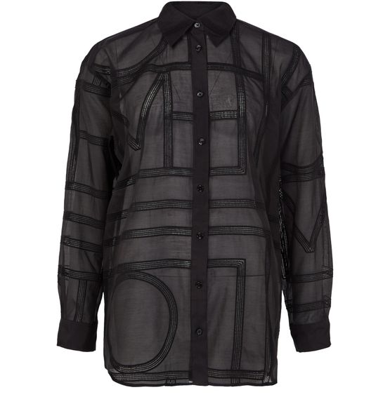 • Description : Loose fit, long-sleeved, long, cuffed sleeves, front buttoned closure, sheer lining, visible stitching, buttoned-down collar.