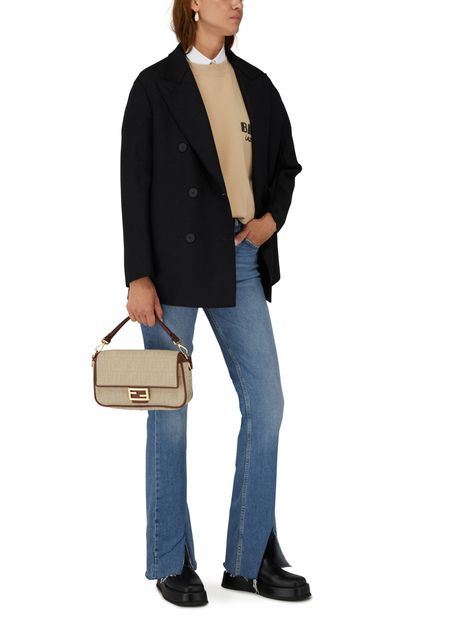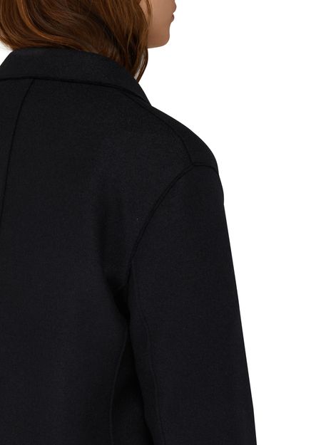 • Description : Warm fabric, crossover fastening, front buttoned closure, side pockets, tailored sleeves.