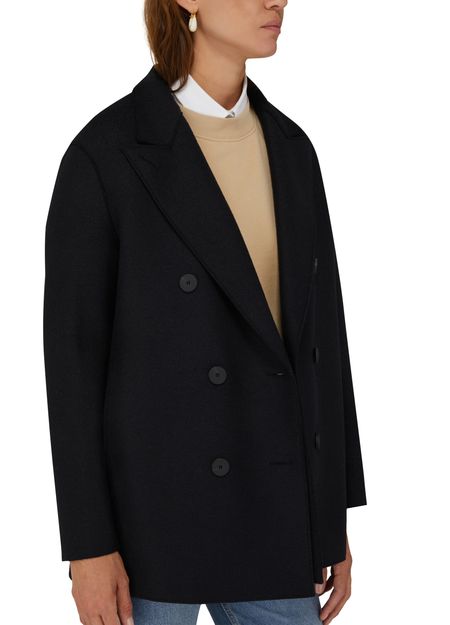 Stay warm and stylish with Harris Wharf's London coat. The warm fabric and tailored sleeves provide comfort and elegance. The crossover fastening and front buttoned closure add a modern touch, while the side pockets offer functionality. Perfect for chilly days, this coat is a versatile addition to any wardrobe.