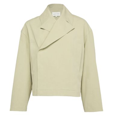 Loulou de Saison's Coen short cotton jacket offers a chic, casual silhouette with a concealed closure for a sleek finish. Its long-sleeved design and practical side welt pockets combine style and functionality, making it the perfect layering piece for effortless everyday wear. Embrace comfort without compromising on elegance.