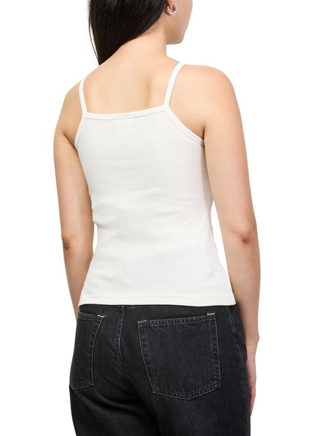 Reveal Courreges's contrast tank top, crafted with ribbed texture and a distinctive rectangular neckline. The long sleeves and front logo add a modern edge, making this top a versatile choice for layering or standalone wear. Perfect for elevating both casual and refined ensembles.