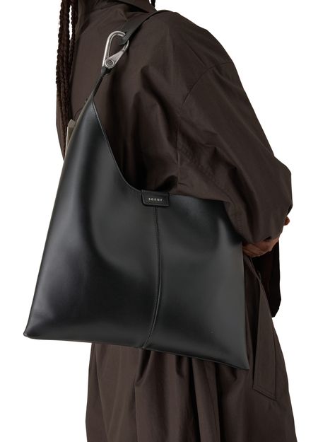 Reveal Soeur's Cosima mini hobo bag, crafted from smooth leather with a single handle and thin strap for versatile styling. Visible topstitching and a front logo add refined detail, while the silver metal finish elevates its modern appeal. A sleek choice for contemporary wardrobes.