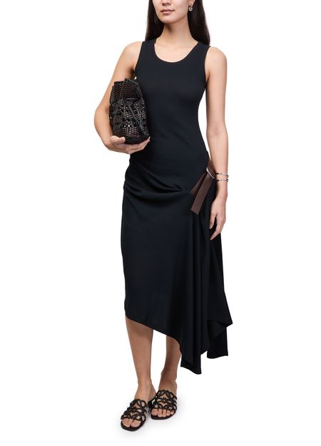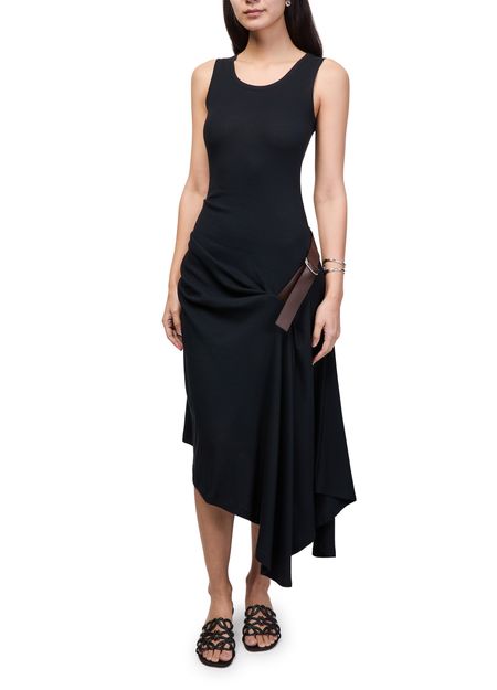 Reveal Loewe's cotton and elastane tank top, a midi dress defined by its round neck and sleeveless silhouette. The asymmetric cut and draped detail add a modern twist, making it a versatile choice for both daytime and evening occasions.