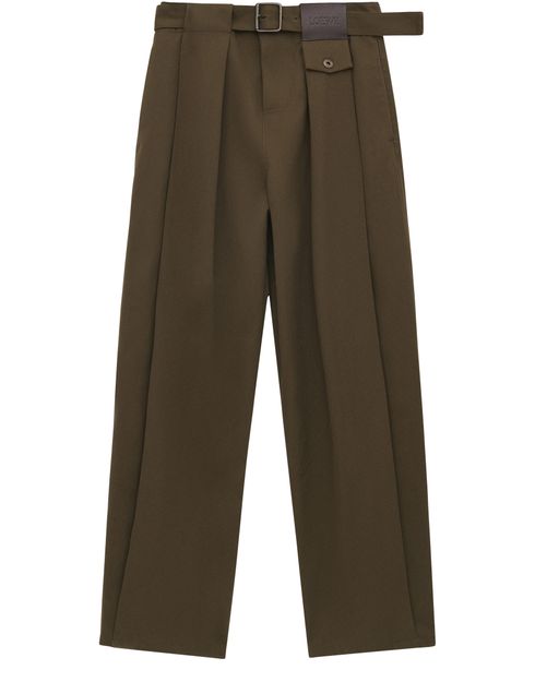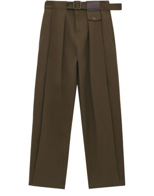 Reveal Loewe's formal pant, crafted with an ankle-length silhouette and a belted waist for a refined fit. Pleated details and visible stitching add sophistication, while side pockets and a detachable belt enhance practicality. The embossed leather Loewe patch completes this versatile piece for modern wardrobes.