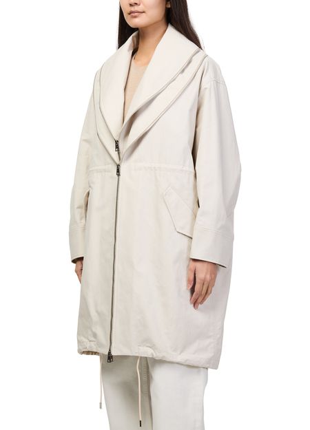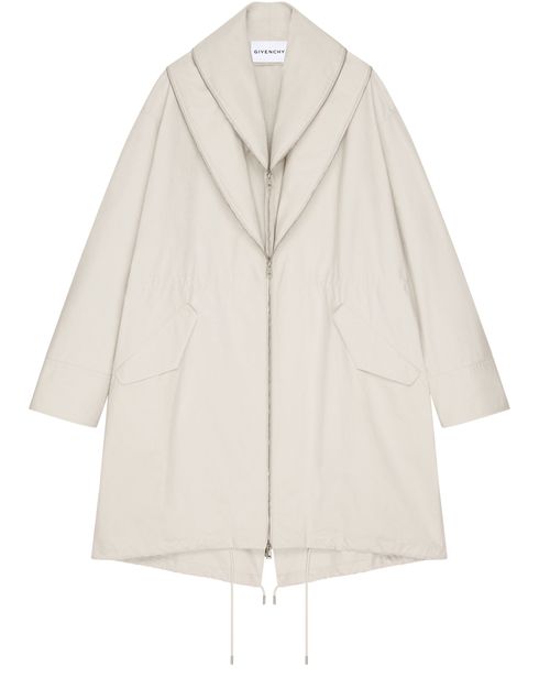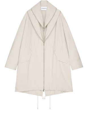Reveal Givenchy's cotton parka with zip-up shawl collar, designed with a modern silhouette and long sleeves. The zipper closure and side pockets add practical flair, while the refined cotton fabric ensures comfort. Perfect for versatile styling, this piece transitions seamlessly from day to night.