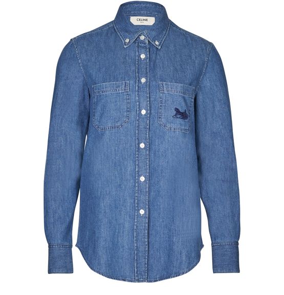 The Celine brand revisits the cowboy wardrobe by injecting a refined touch that is bound to appeal to women. The result is the Western Sulky Light Denim shirt which features a back yoke and chest pockets, finished off with an American collar. The now-iconic sulky horse-drawn carriage creates a gentle contrast on an absolute must-have piece.