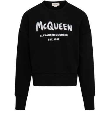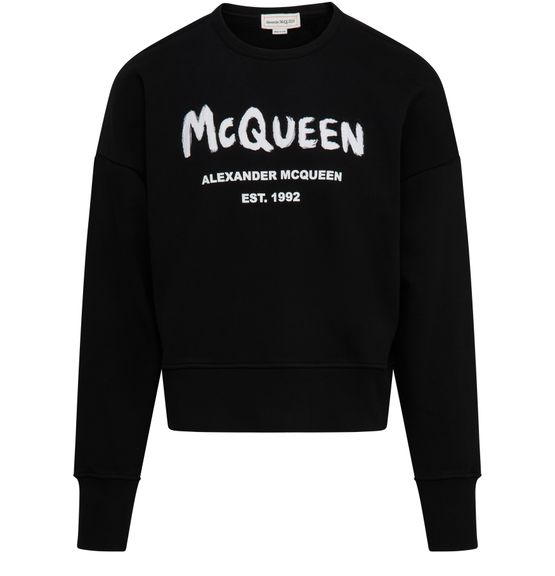 Detailed with the graffiti version of the Alexander McQueen logo this round neck sweatshirt is deliberately oversized, with a deep armsyce. Style and comfort combined for a piece that is indispensable.