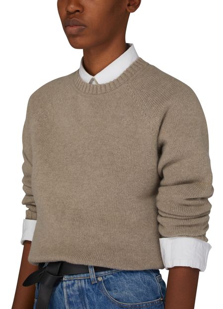 Crewneck sweater is a classic knit sweater that is made with a warm fabric, perfect for chilly days. It features a ribbed design and has a label with the logo for a stylish touch. The cuffs are also ribbed, adding to the overall elegant look of this sweater.