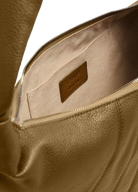• Description : Shoulder bag, single handle, leather handle, grained leather, zipper closure, padded texture.
