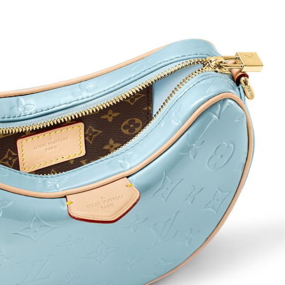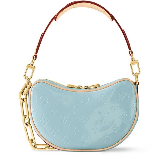 Fashioned from glossy Monogram Vernis cowhide leather with the Monogram pattern discreetly embossed into the leather, the Croissant PM takes on a glamourous aspect. An effect only amplified by the pastel colorway and removable gold-color chain. The interior features a flat pocket. The removable, non-adjustable strap enables short-shoulder carry.