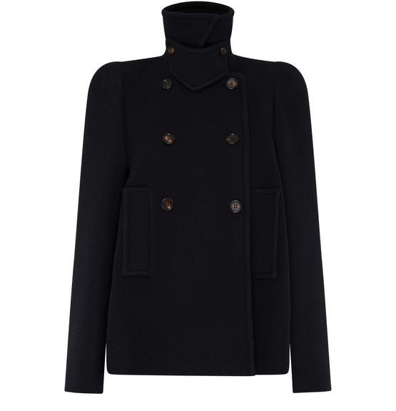 Chloé's Cropped coat boasts a short, long-sleeved silhouette with a front buttoned closure for effortless style. Its high neck adds sophistication, while side pockets offer practicality. Perfect for casual outings, this jacket combines elegance and comfort, making it a versatile addition to your wardrobe for any season.