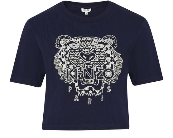 This Kenzo cropped Tiger t-shirt bears the iconic imprint of the house. Made in soft, comfortable navy blue cotton, it will go well a pair of high-waist 'mom' jeans and a pair of colourful trainers.