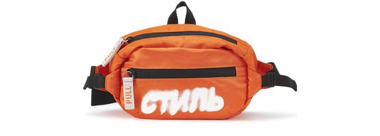 Designed by Heron Preston, this fluoro orange belt bag has a confident streetwear look. The inscription CTNMb is tagged in white letters like graffiti.