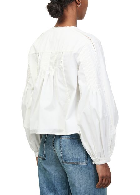 Reveal Isabel Marant's Cubraly blouse, where a crew neck meets long, ruffled sleeves and refined cuffed details. The soft silhouette and elegant finish make this top a versatile choice, easily styled for both work and evening outings. Experience a modern update to your wardrobe essentials.