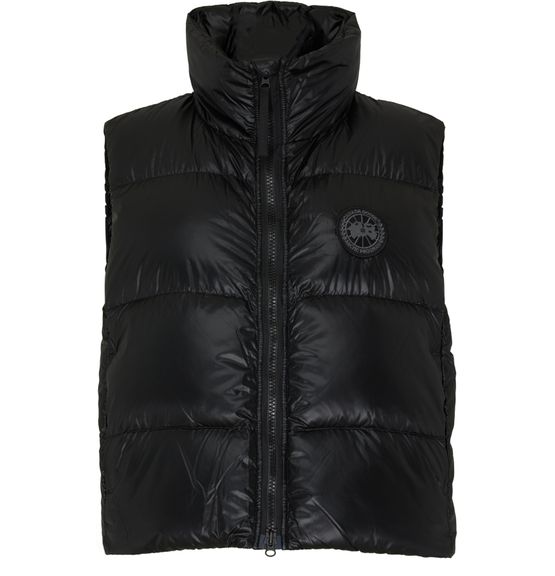 Canada Goose's Cypress cropped down jacket showcases a sleeveless, short design with a high neck for added warmth. The zipper closure ensures a snug fit, while the chest logo adds a touch of sophistication. Perfect as a puffer jacket or vest, it’s ideal for layering on chilly days.