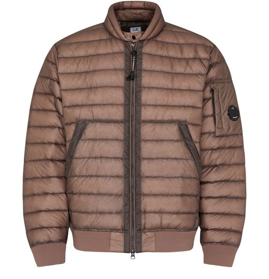 C.P. Company's D.D Shell down jacket showcases a short, long-sleeved silhouette with a high neck for added warmth. Featuring a zipper closure for convenience, it includes side welt pockets for practicality. The appliquéd logo on the front and logo at the back label highlight the brand's distinctive style.