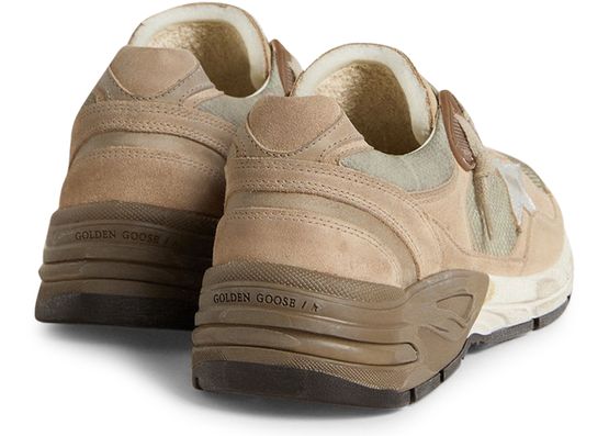 Reveal Golden Goose's running sneakers, crafted with a round closed toe and a bold contrasting sole. The visible stitching and logo on the side add a signature touch, while the laces and strap closure ensure a secure fit. These sneakers redefine comfort and style for everyday wear.