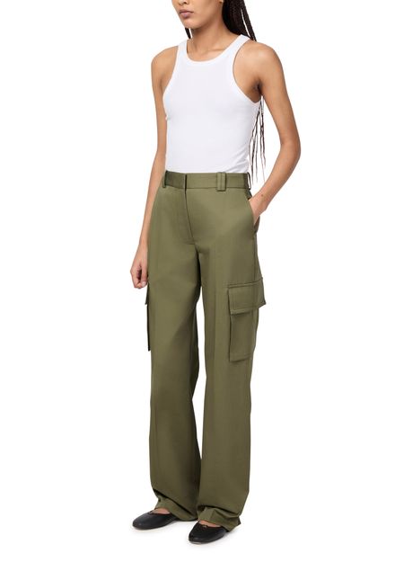 Anine Bing's Dayton cargo pants blend style and functionality with a straight cut and ankle length. Featuring a concealed closure and visible stitching, they offer ample storage through flap pockets, side pockets, and a back pocket. Belt loops complete the look, making these pants a versatile wardrobe staple.