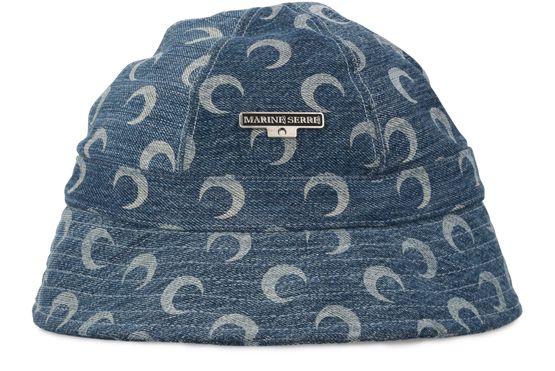 This denim hat is a bold design by Marine Serre. The fashion designer revisits the form and finishes of this cotton model bearing the brand's iconic motif.