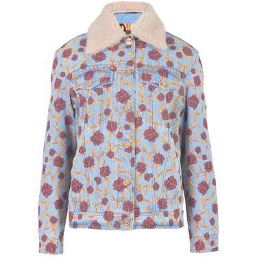 Combining multiple textures and styles, ready-to-wear fashion house Versace brings a glamorous yet on-trend touch to this denim jacket. A piece with floral embroidery that creates a romantic accent and a collar that's soft to the touch. This creation for women has a distinctive, very comfortable on-trend shape and contrasting patterns that enhance the look.