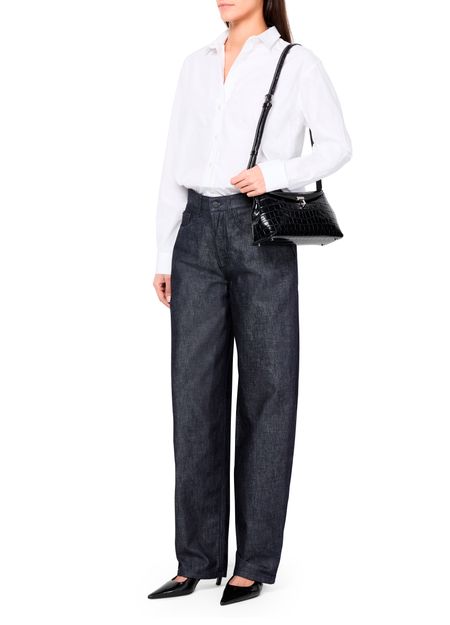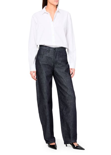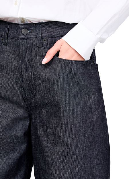 • Description : buttoned and concealed zipper closure, belt loops, visible stitching, ankle length, side pockets, loose fit.