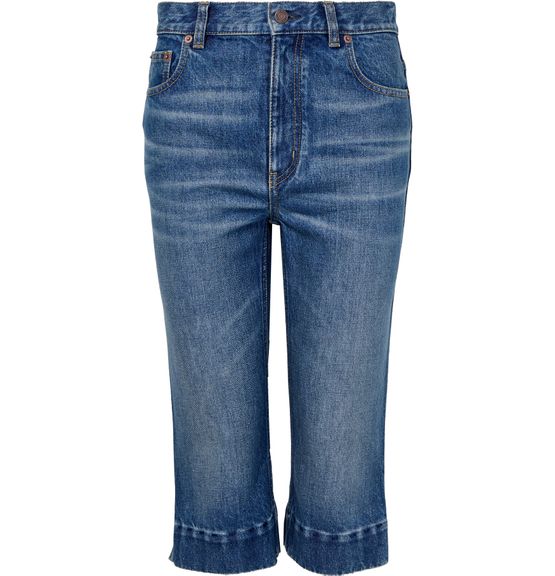 Reveal Chloe's denim shorts, crafted from faded denim with a below-knee length for a modern silhouette. The buttoned zipper closure, belt loops, and visible stitching add refined structure, while side and back patch pockets with a back leather logo offer both function and signature flair.