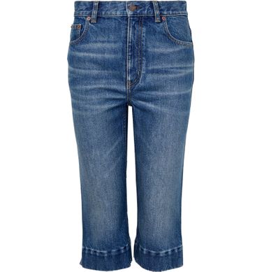 • Description : Back leather logo, faded denim, side pockets, back patch pocket, visible stitching, buttoned zipper closure, belt loops.