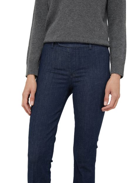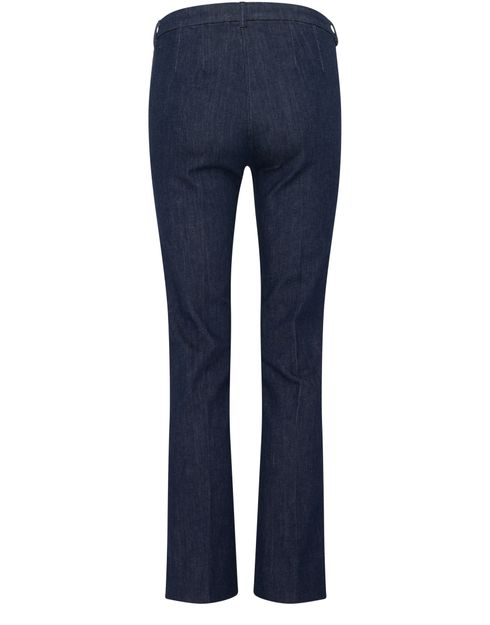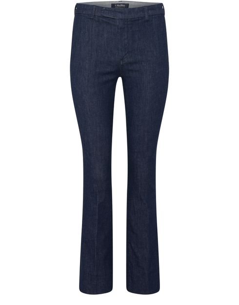 S Max Mara's Denise flared jeans are a sleek and versatile addition to any wardrobe. With a logo at the back label, hook and concealed zipper closure, belt loops, and calf length, these slim fit jeans provide a flattering silhouette for any occasion. Perfect for creating a timeless and chic look.