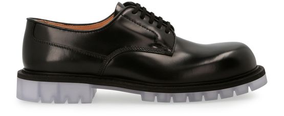 The Bottega Veneta brand stands out for its innovative and minimalist style. These derbies on transparent soles feature a daring cut, an oversized edge and contrasting textures.
