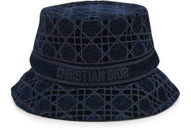 Description : Dior Cannage velvet, tonal embroidered band with 'Christian Dior Paris' signature, small brim with topstitching, easy-to-carry, foldable design.