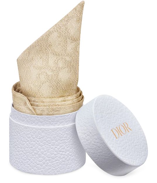 • Description : Gold-tone Dior Oblique print, tonal jacquard band with Christian Dior signature on the back, woven with metallic thread.