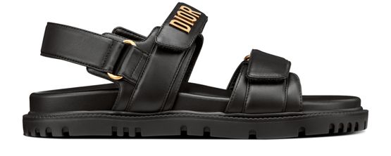 The black lambskin DiorAct sandal has a modern silhouette. The style features an anatomical-shaped sole made with an ultra lightweight and comfortable leather. Scratch bands further enhanced by a gold-finish metal 'Dior' signature on the superior band complete the design. The sandal will lend a contemporary touch to any look.