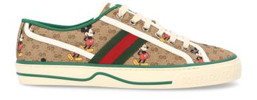 Gucci continues to the celebrate the famous Disney character with these Disney x Gucci Tennis 1977 sneakers. The shoes feature many of the Italian label's hallmarks, including the GG Supreme canvas which covers the main part of the shoe and the green-and-red Web stripe on the side. The Disney icon features prominently on these sporty trainers.