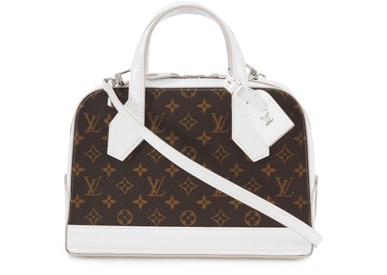 This stunning update of the Dora bag brings together timeless House codes and a contemporary attitude. With lines inspired by by two historic travel bags, show is reinterpreted in a fresh and pure white color. It features iconic Monogram canvas framed and accented by pristine white leather, for maximum graphic impact.