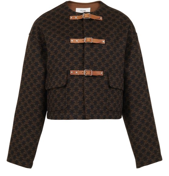 Description : loose fit, crew neck, 2 patch pockets with flap, 3 adjustable, Celine-embossed leather straps with metal buckles, made in italy, reference : 2v47g741n.17tm.