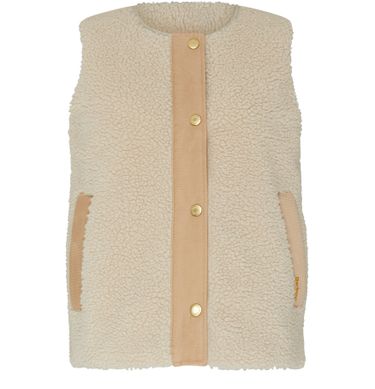 Barbour's Dulsie liner gillet showcases a sleeveless, collarless design perfect for layering. With a front buttoned closure and embellished buttons featuring a gold finish, it adds a touch of elegance. The appliquéd logo at the back and side welt pockets enhance its casual charm, making it a versatile addition to any wardrobe.