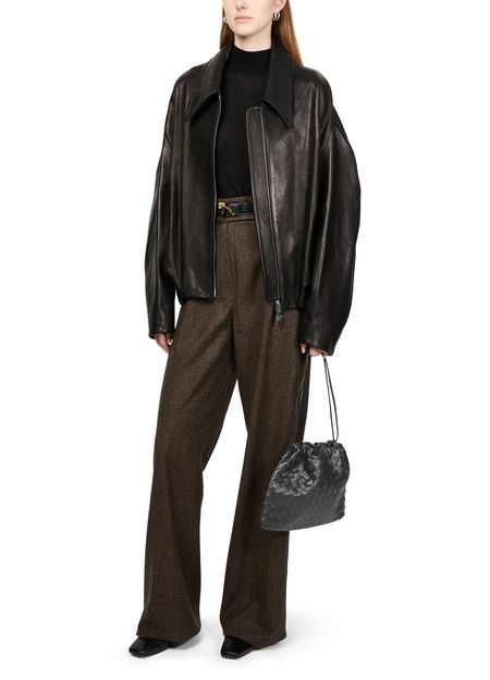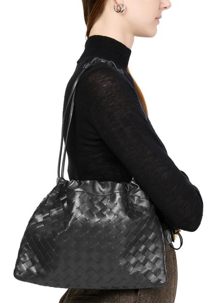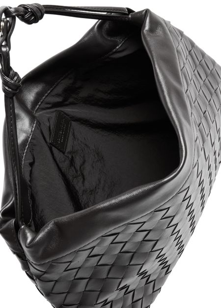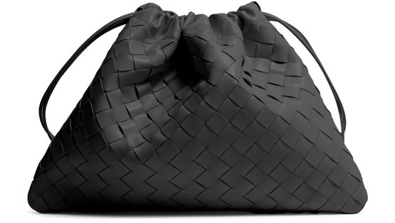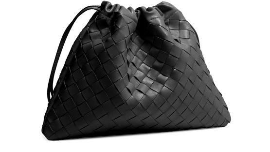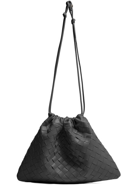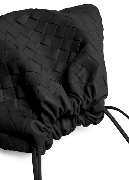 • Description : Pouch, intrecciato weaving technique, smooth leather, drawstring closure, leather.