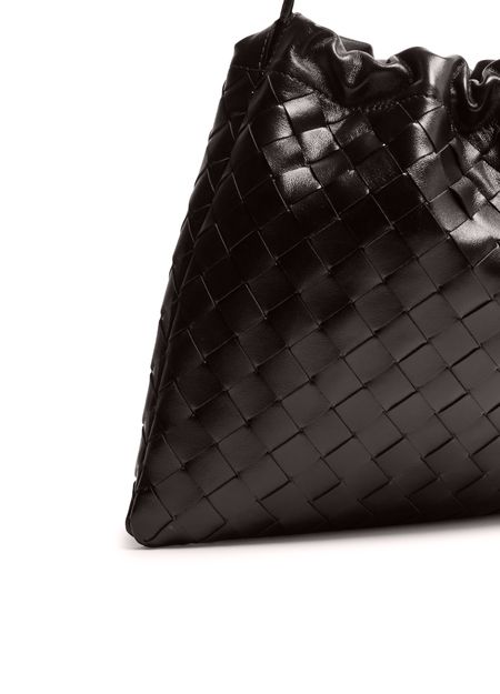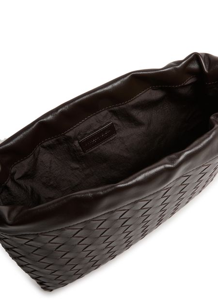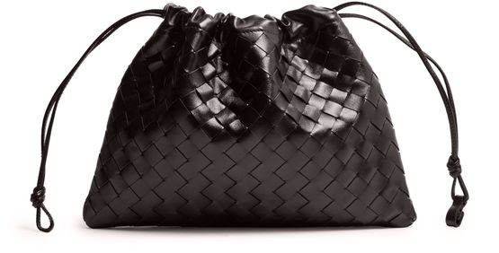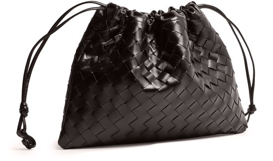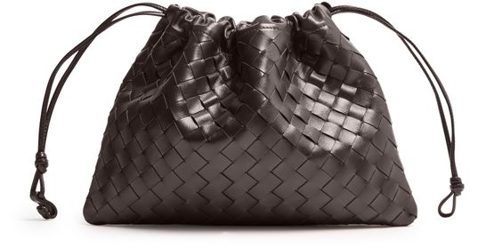 Reveal Bottega Veneta's Dustbag shoulder bag, showcasing the iconic Intrecciato weaving technique. The single compartment and drawstring closure offer both style and practicality, while visible topstitching adds a refined finish. This cosmetics pouch is a modern essential for organized elegance.