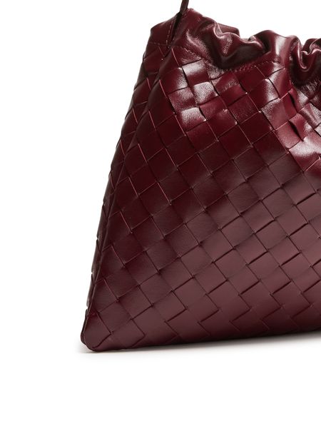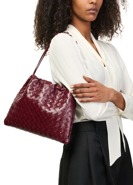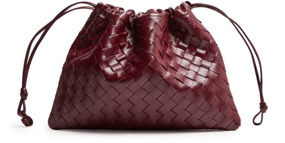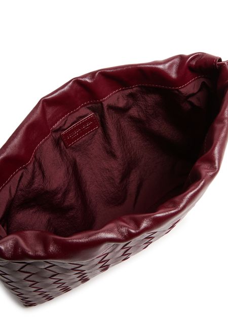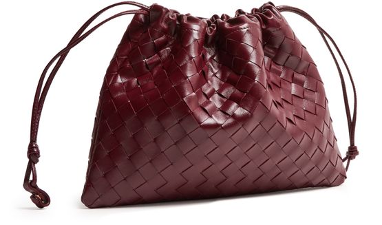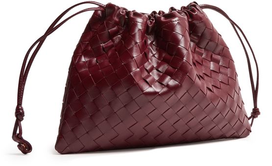 Reveal Bottega Veneta's Dustbag shoulder bag, crafted from smooth leather with the signature Intrecciato weaving technique. The padded texture and visible stitching add a refined touch, while the drawstring closure and single compartment ensure both style and practicality for your essentials.