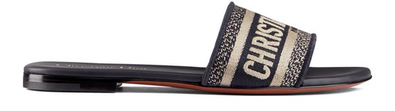 Dior artistic director Maria Grazi Chiuri drew inspiration from the Dior Book Tote bag to design these Dway embroidered cotton mules. This flat design has an embroidered logo on the upper. Wear them with cuffed jeans for a casual look.