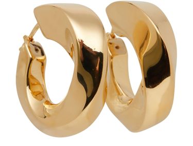 Bottega Veneta's earrings feature a luxurious gold finish, adding a touch of elegance to any ensemble. The sleek design and contemporary flair make these earrings a statement piece for any occasion. Sold as a pair, they are perfect for those who appreciate modern, understated luxury in their accessories.
